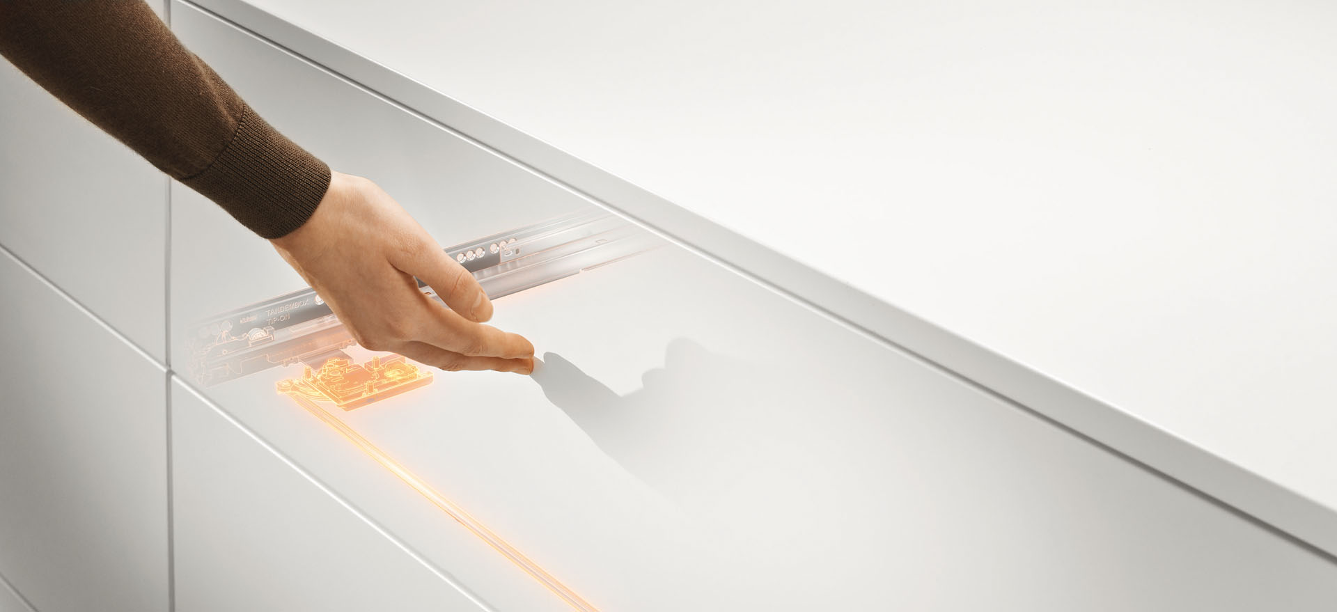 The TANDEMBOX drawer system has been impressing furniture users and furniture manufacturers with its proven technology for many years now. Blum have now developed TANDEMBOX Antaro, a new programme line with new design options. TANDEMBOX Antaro has a clear style and all components are colour-coordinated. Minimalist design meets proven technology. That is TANDEMBOX Antaro.